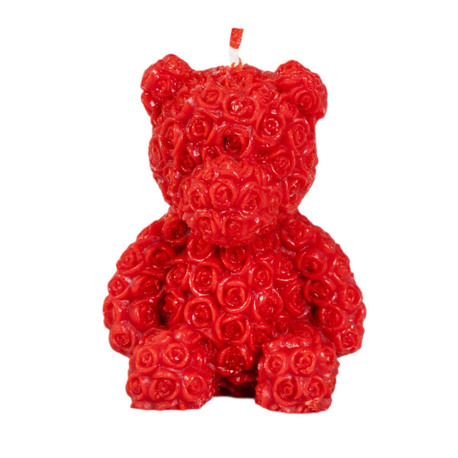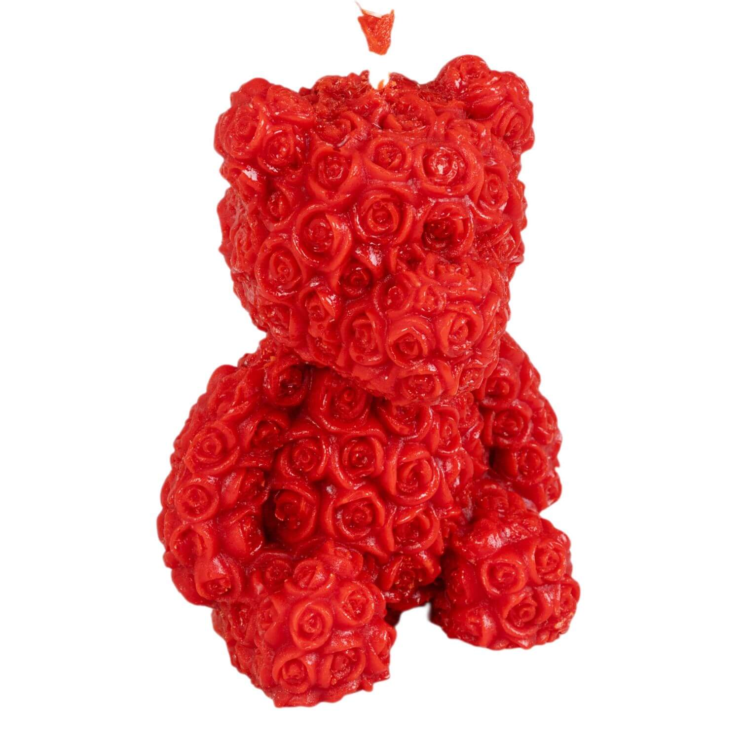 Czerwona świeca różany miś 10 cm z wosku pszczelego