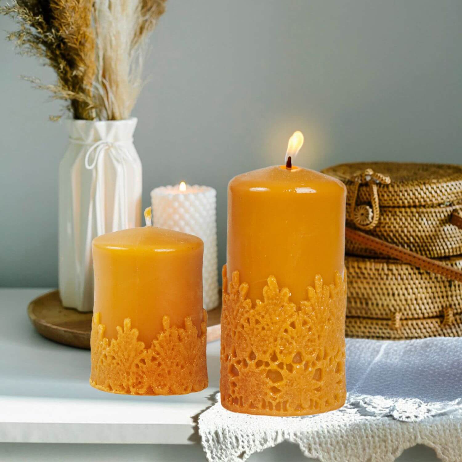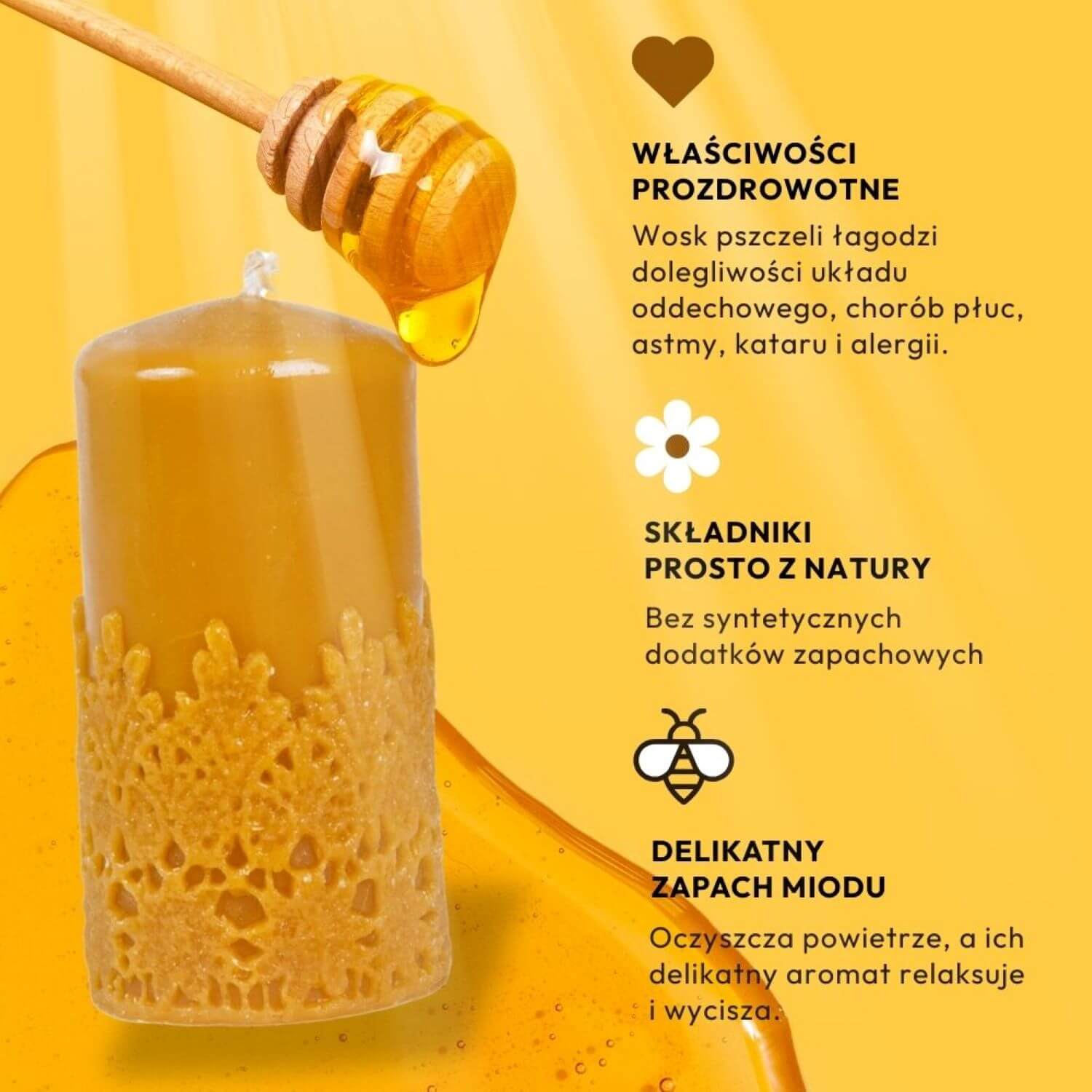 Świeca Koronkowy Walec Duży z Wosku Pszczelego