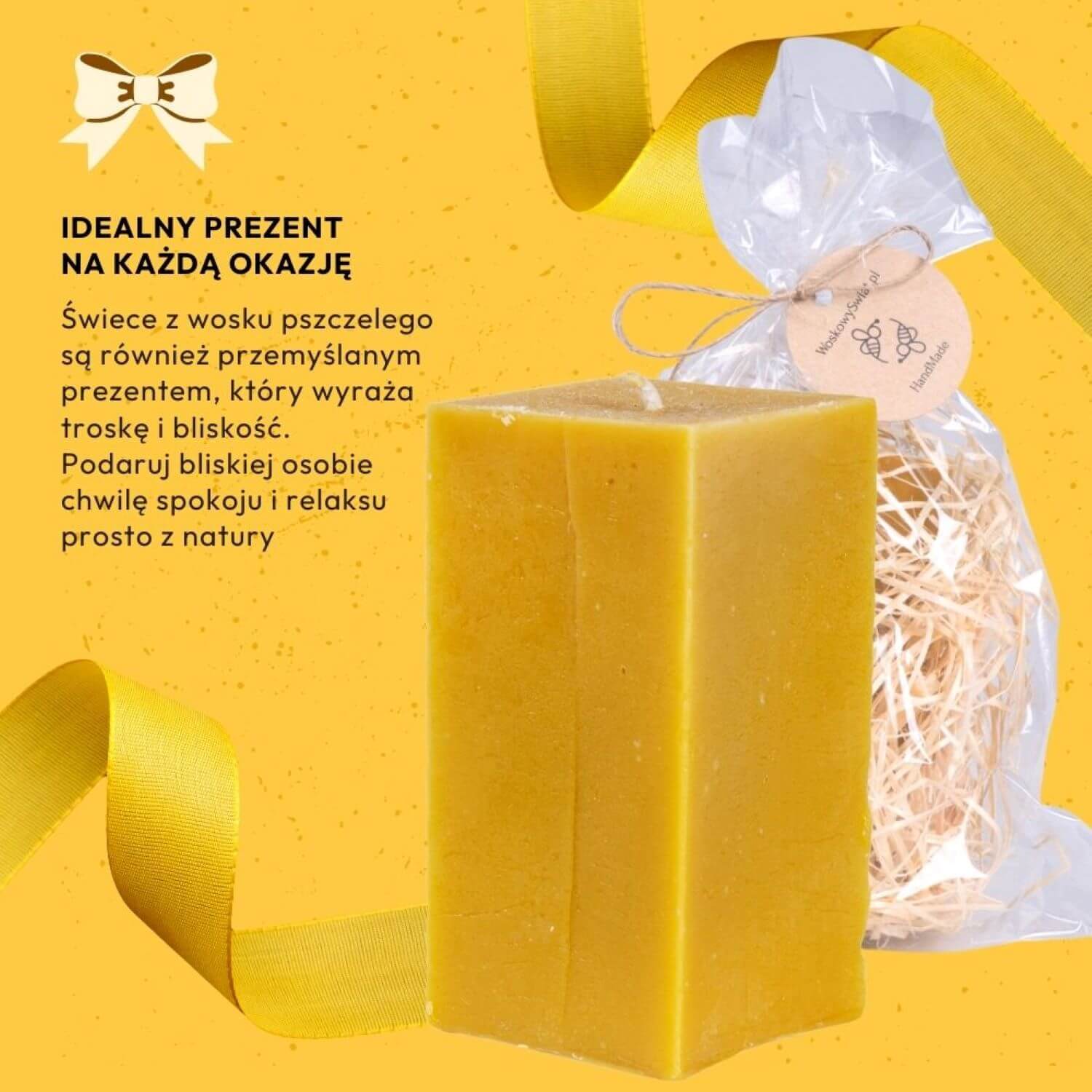 Świeca prostopadłościan gładki duży z wosku pszczelego to bardzo dobry pomysł na prezent. Z pewnością sprawi radość osobom mającym niebanalny styl wystroju wnętrza, jak i tym, którzy kochają kontakt z naturą.