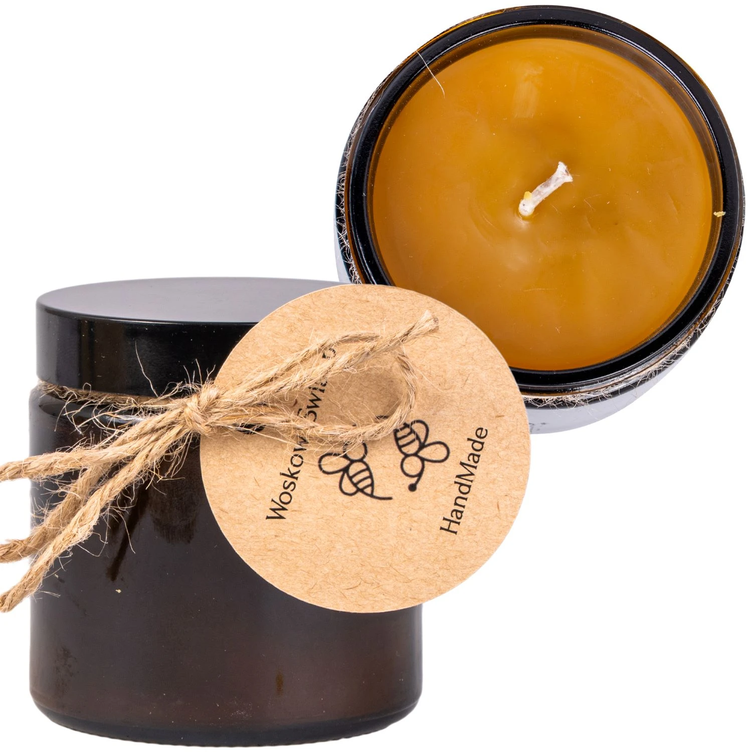 Świeca w Brązowym Słoiku z Wosku Pszczelego