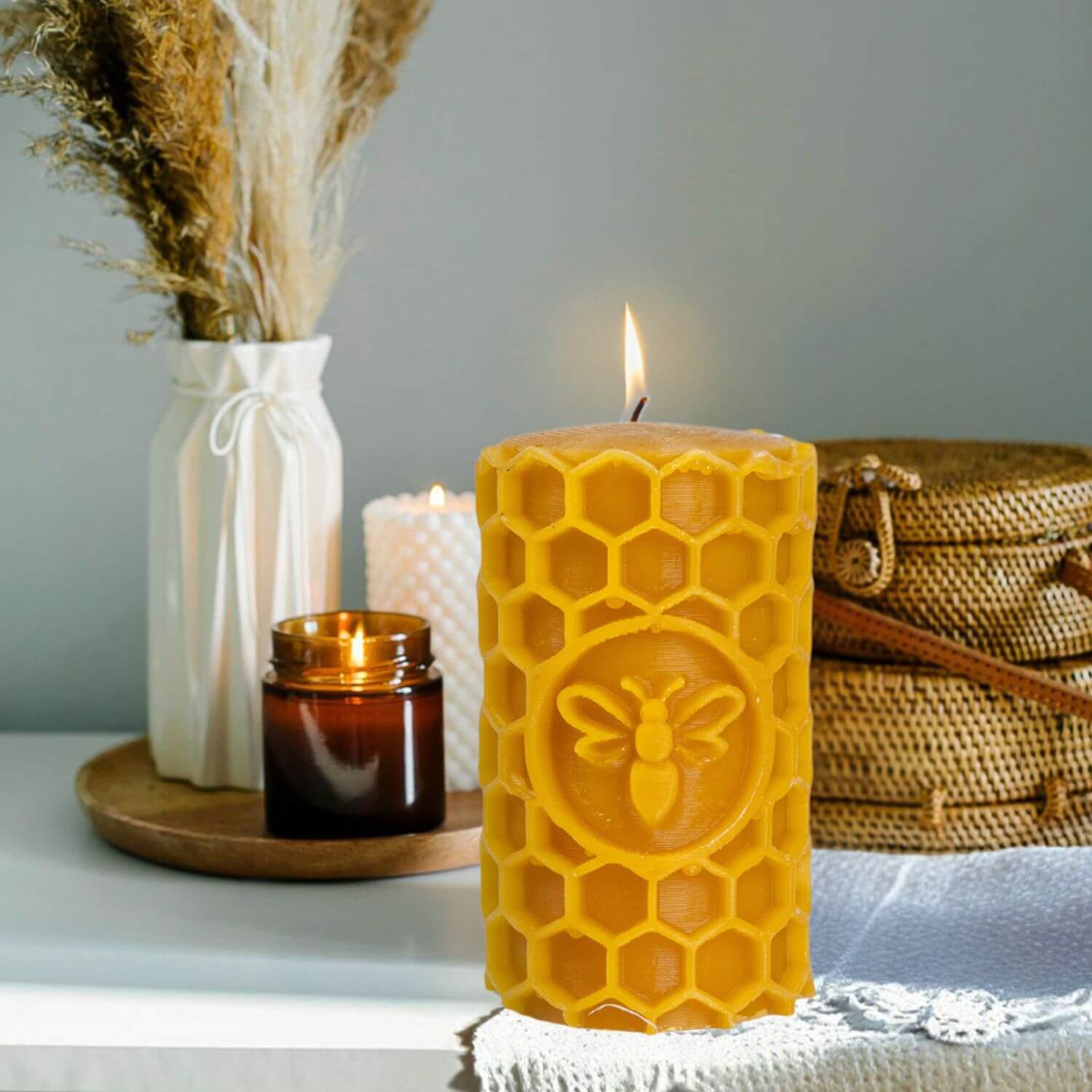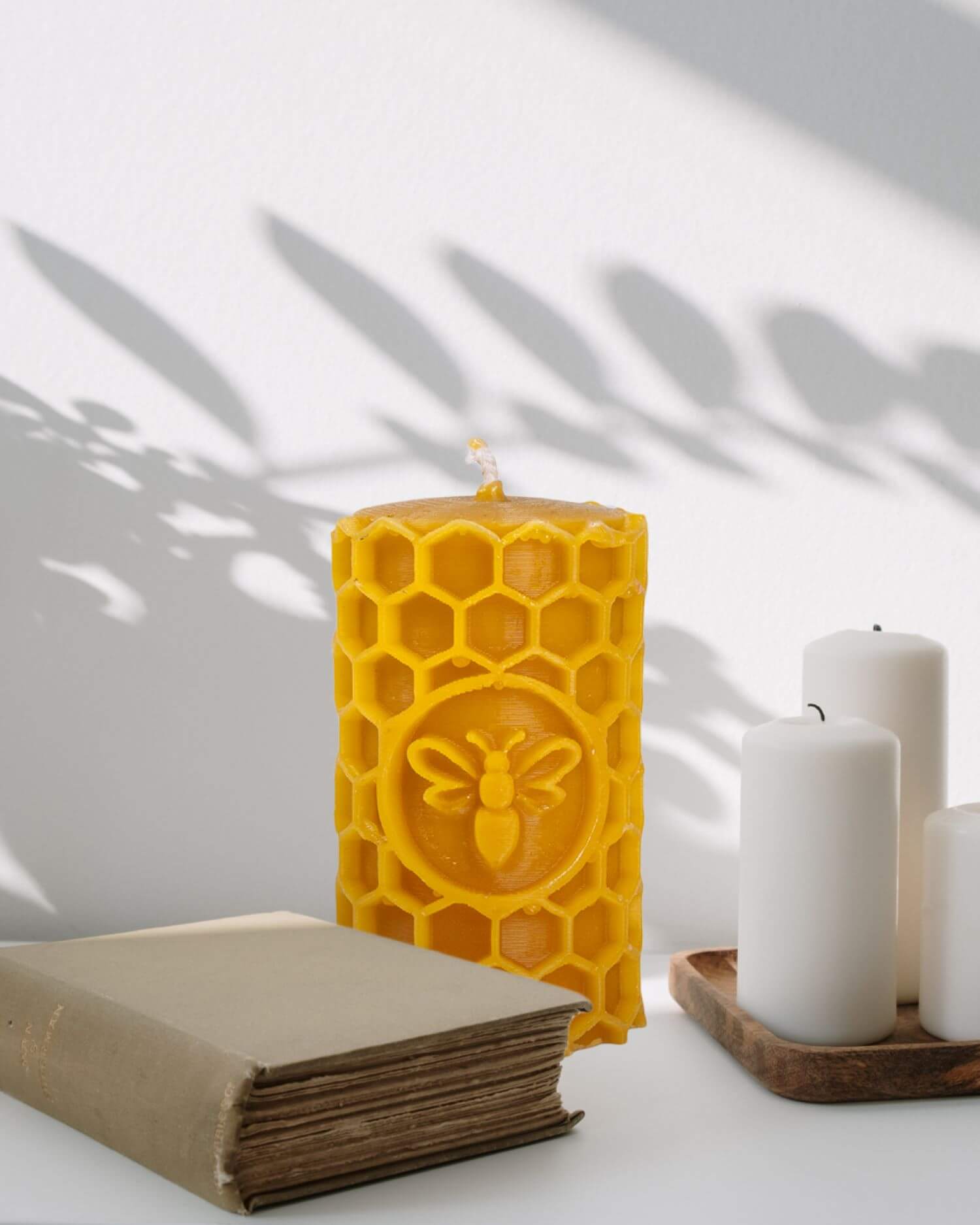 Świeca Walec w Heksagony z Pszczołą z Wosku Pszczelego