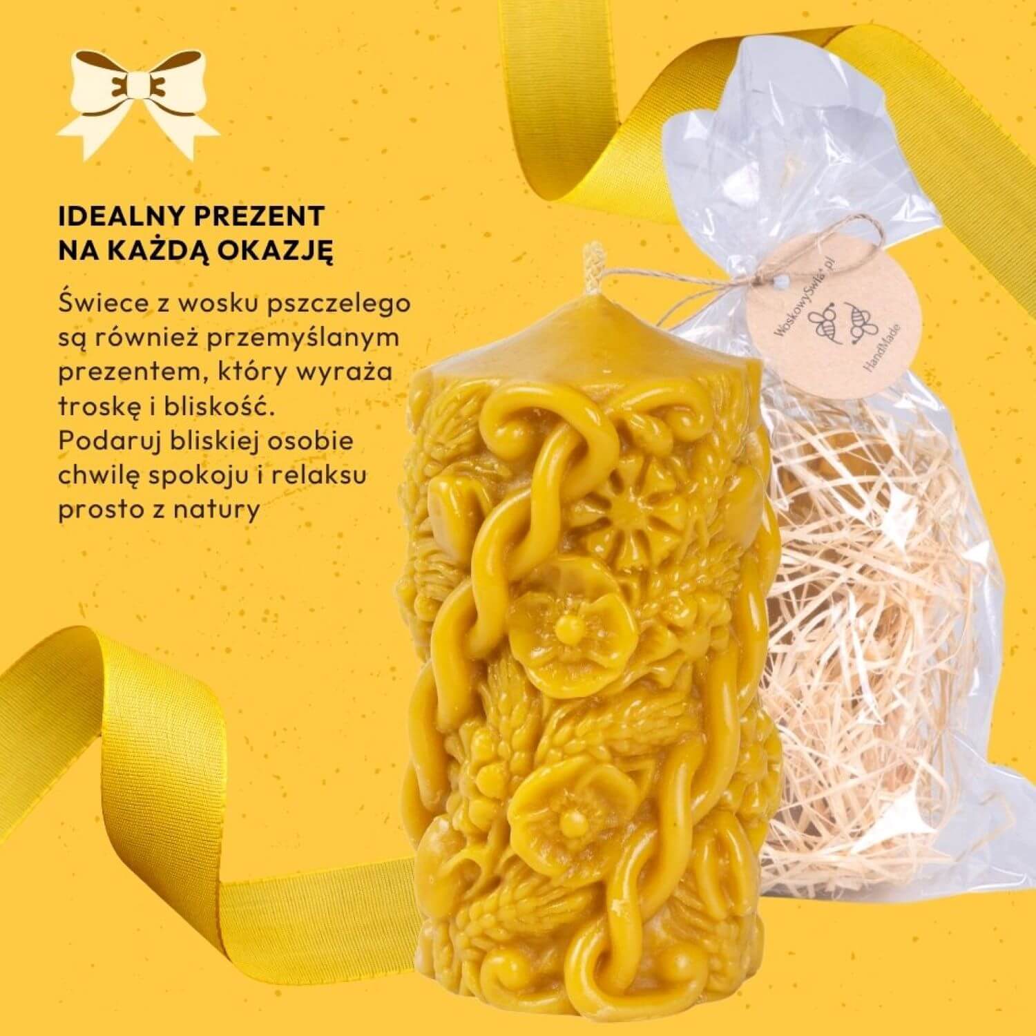 Nasze ręcznie wykonane świece z wosku pszczelego to doskonały dodatek, który wprowadzi ciepło i harmonię do każdego domu. Ich naturalny blask pięknie udekoruje wnętrze, tworząc niepowtarzalny klimat. Świece z wosku pszczelego są również przemyślanym prezentem, który wyraża troskę i bliskość. Podaruj bliskiej osobie chwilę spokoju i ukojenia z naszymi świecami – idealnymi na każdą okazję.