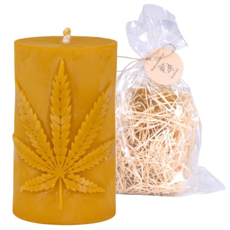 Świeca Walec z Liściem Konopi z wosku pszczelego to bardzo dobry pomysł na prezent. Z pewnością sprawi radość osobom mającym niebanalny styl wystroju wnętrza, jak i tym, którzy kochają kontakt z naturą.